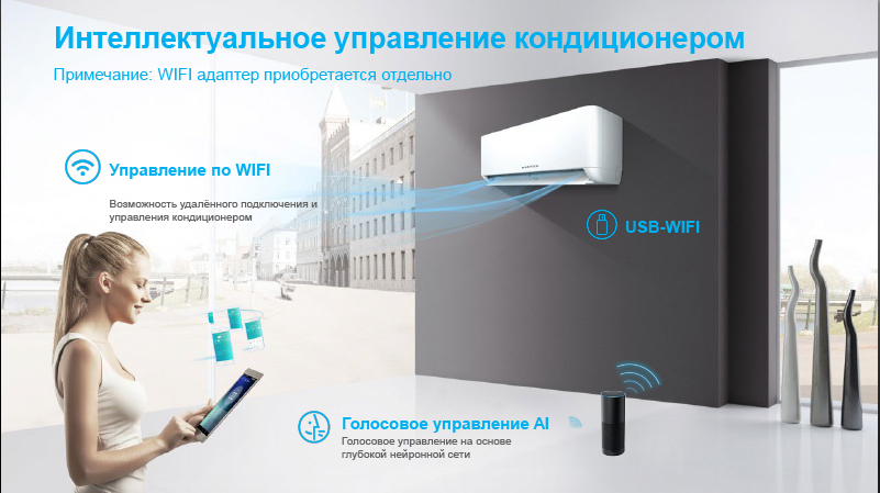 Опционально для кондиционеров серии ADVANCE доступны возможность удаленного управления устройством по WiFi, а также комплектация фильтром высокой плотности.